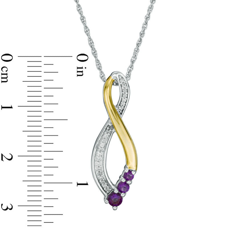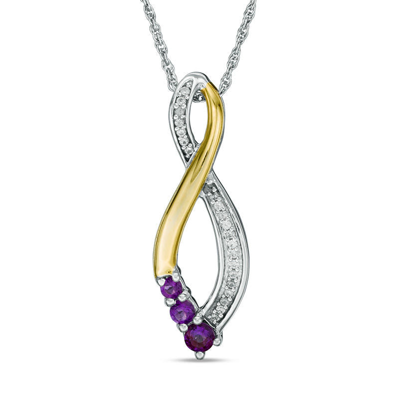 Amethyst and Natural Diamond Accent Three Stone Infinity Pendant in Sterling Silver and 10K Yellow Gold