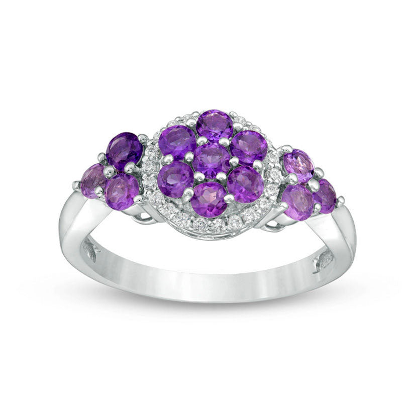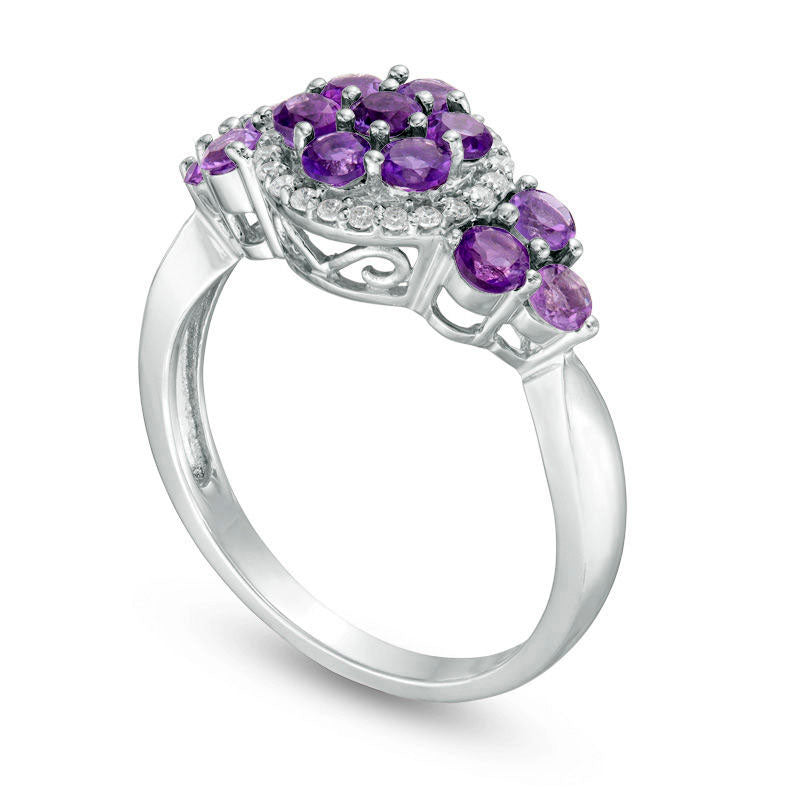 Amethyst Cluster and 0.10 CT. T.W. Natural Diamond Frame Tri-Sides Ring in Sterling Silver