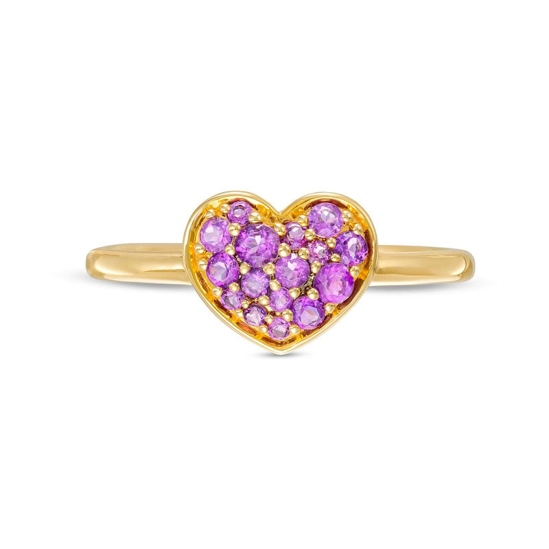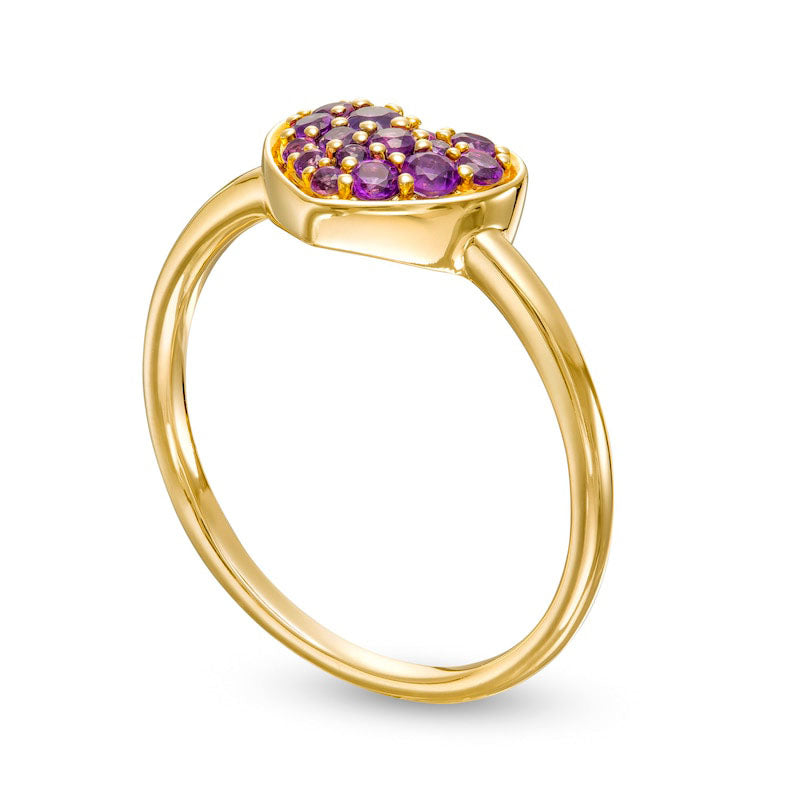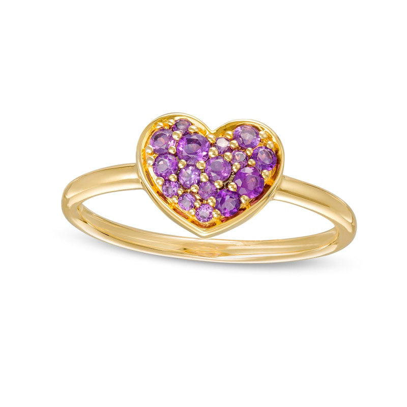 Amethyst Cluster Heart Ring in Solid 10K Yellow Gold