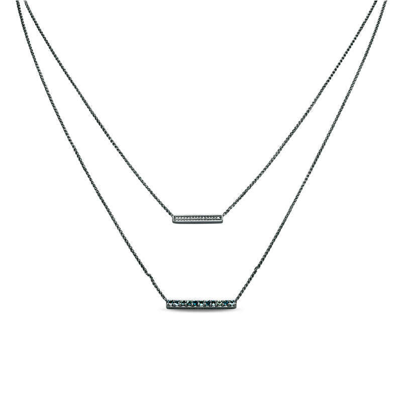 Aquamarine and Natural Diamond Accent Double Strand Bar Necklace in Sterling Silver