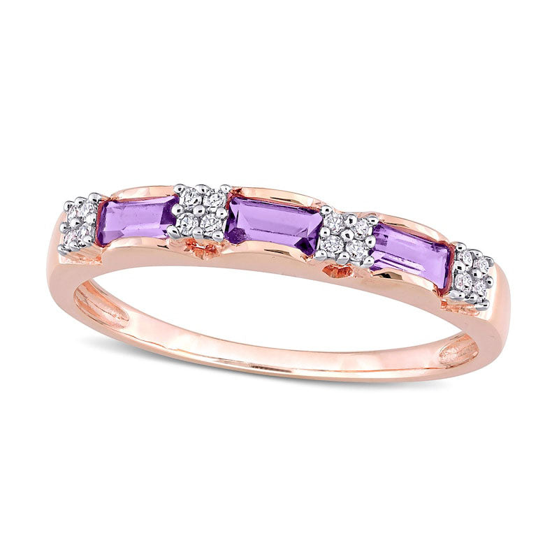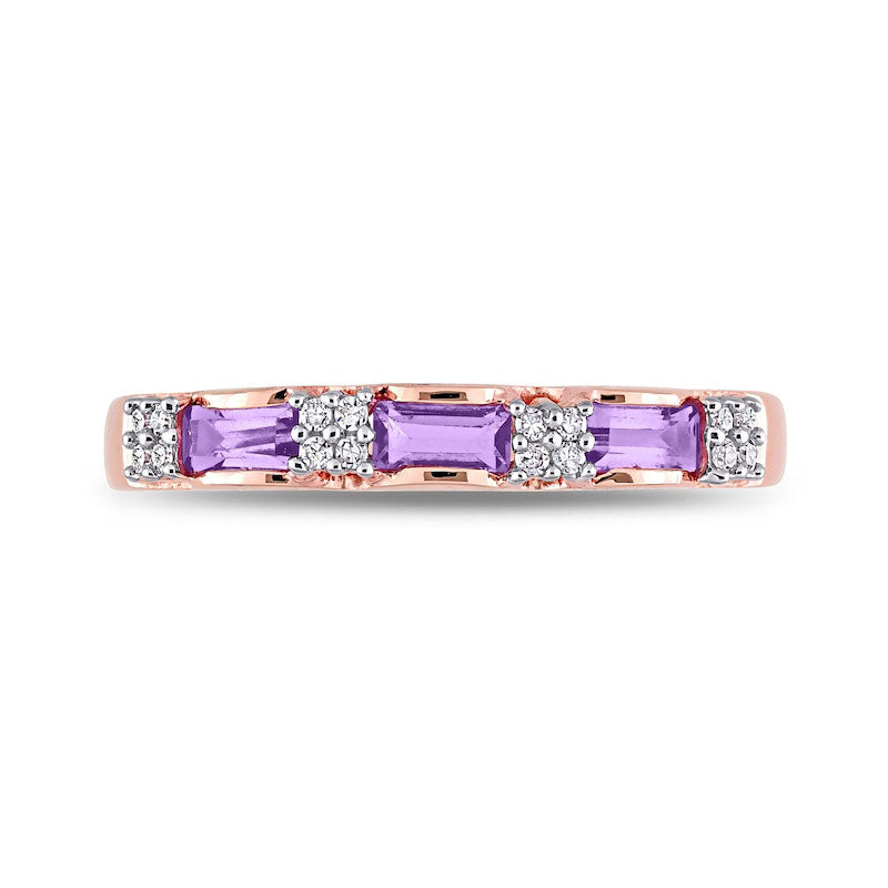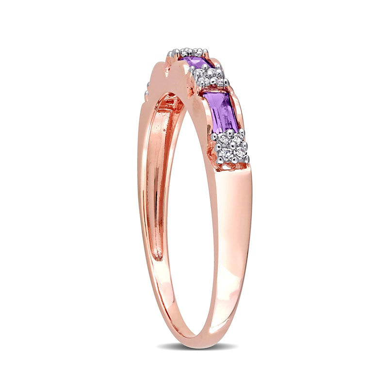 Baguette Amethyst and 0.07 CT. T.W. Natural Diamond Quad Alternating Ring in Solid 10K Rose Gold