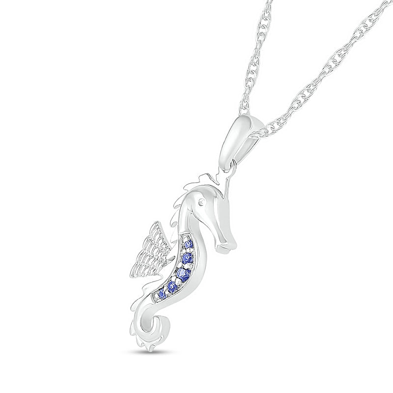 Blue Lab-Created Sapphire Graduated Five Stone Seahorse Pendant in Sterling Silver