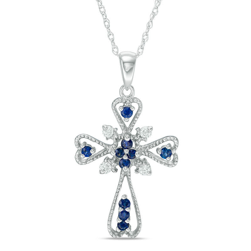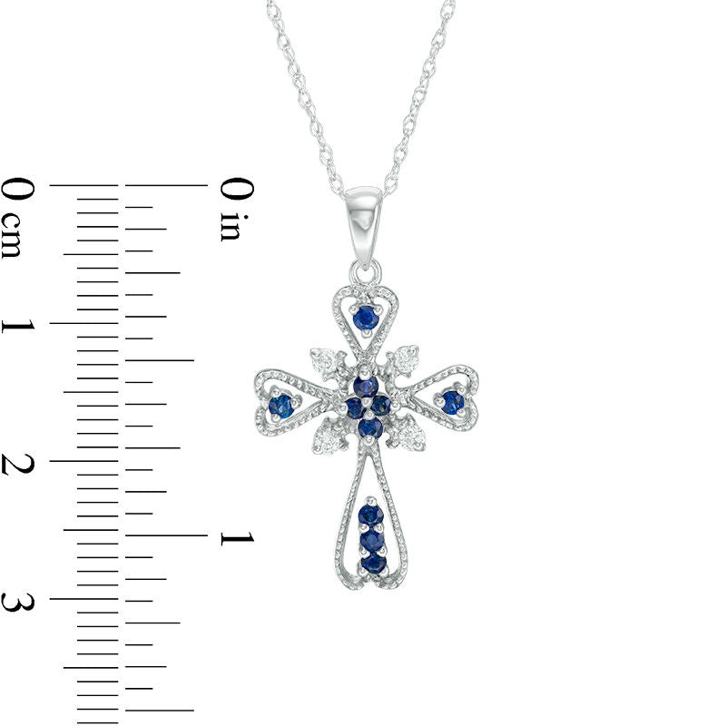 Blue Sapphire and 0.1 CT. T.W. Natural Diamond Gothic-Style Cross Pendant in 10K White Gold