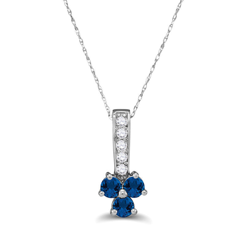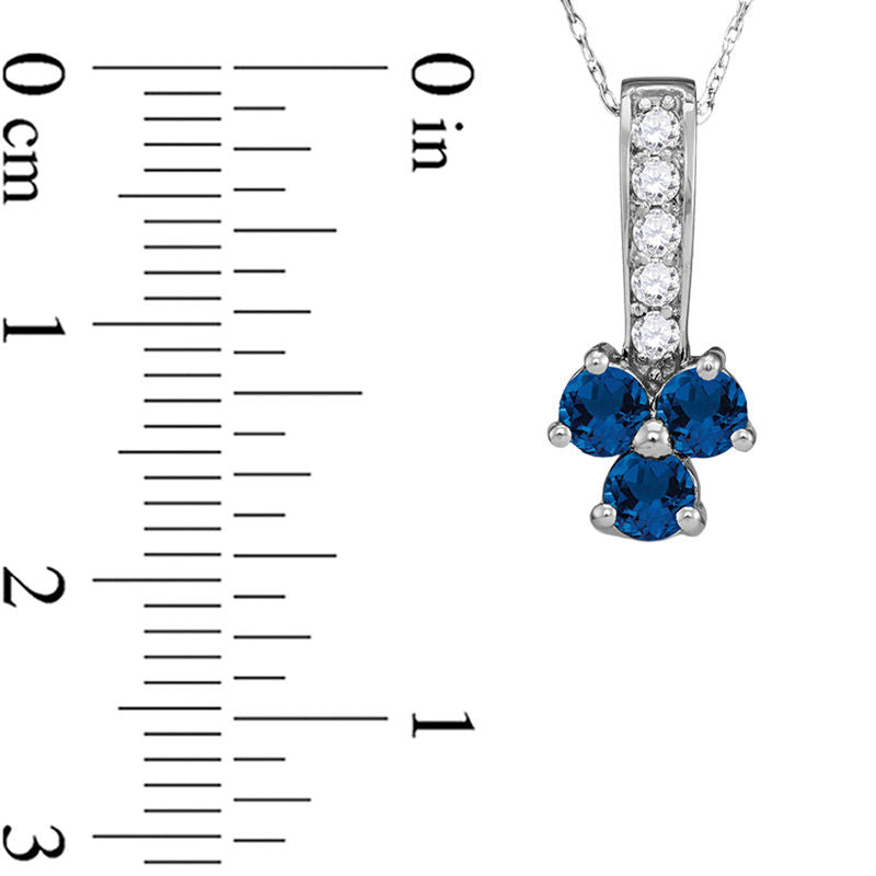 Blue Sapphire and 0.13 CT. T.W. Natural Diamond Trio Pendant in Sterling Silver