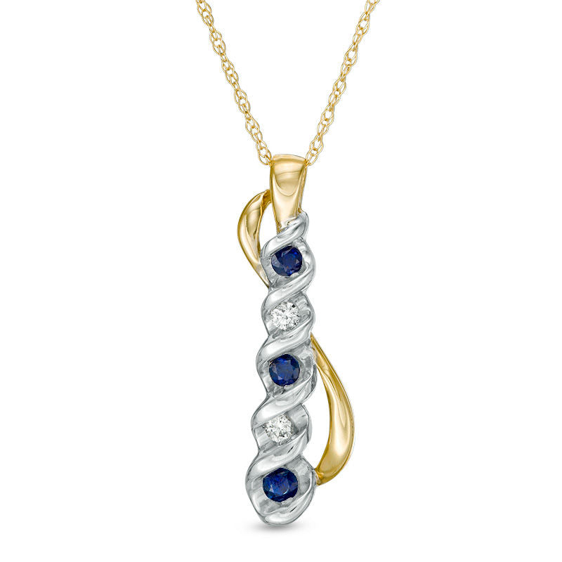 Blue Sapphire and Natural Diamond Accent Linear Overlay Pendant in 10K Two-Tone Gold