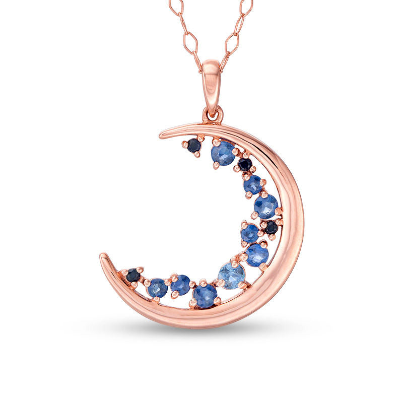 Blue Sapphire Crescent Moon Pendant in 10K Rose Gold