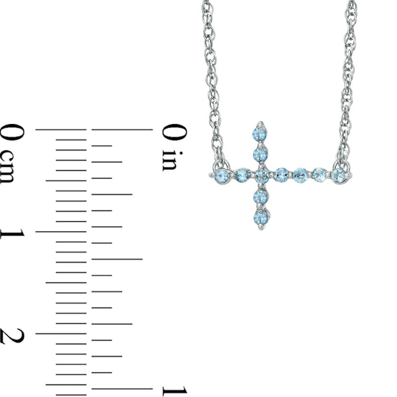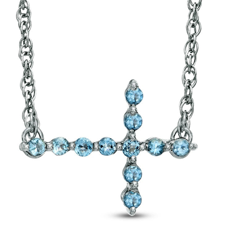 Blue Topaz Sideways Cross Necklace in Sterling Silver