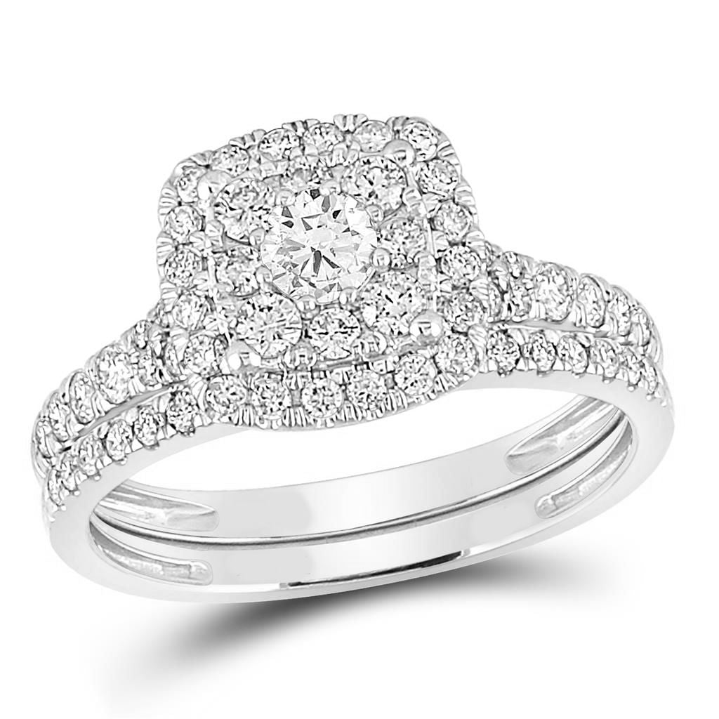 Certified 1.0 Ct. Diamond Double Halo Bridal Engagement Ring Set in 14K White Gold
