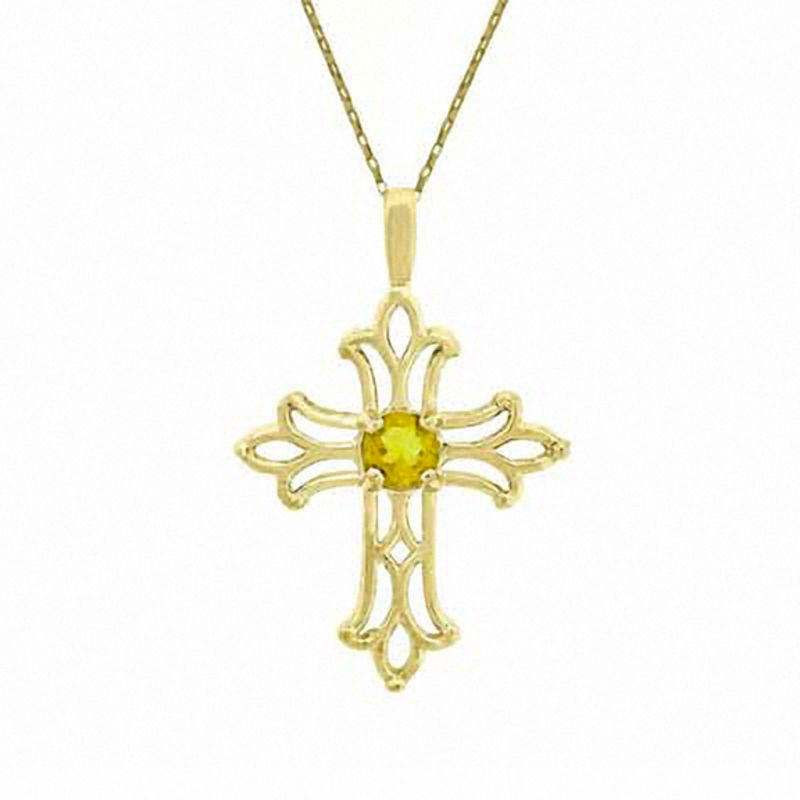 Citrine Birthstone Cross Pendant in 10K Yellow Gold