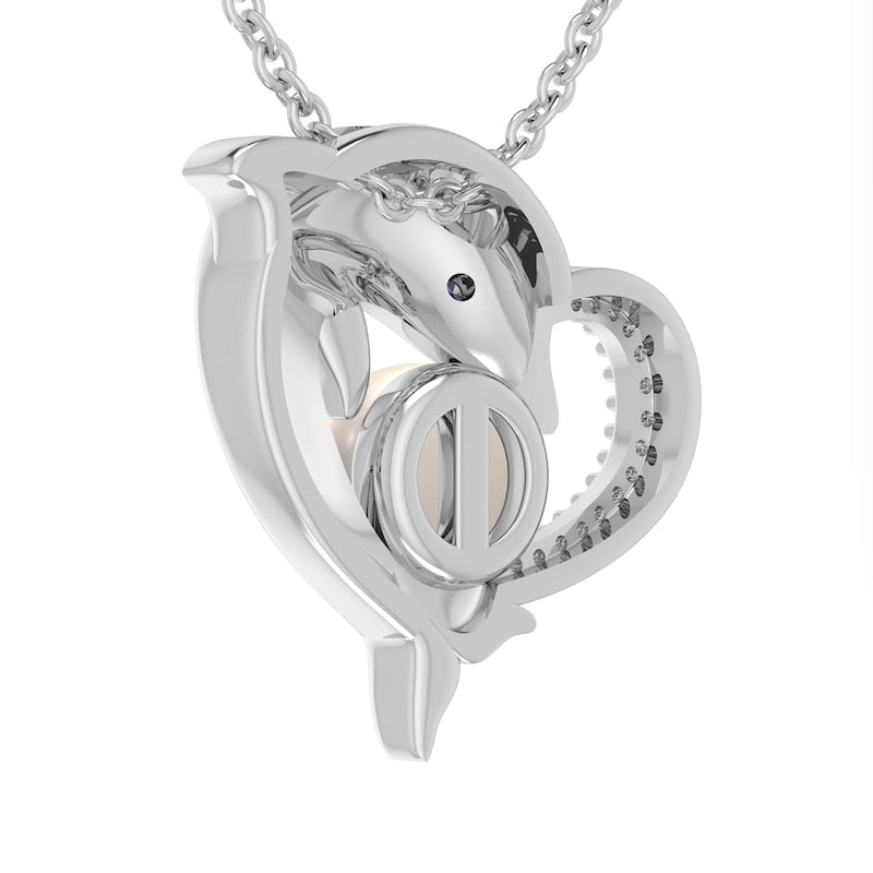 Cultured Freshwater Pearl, Lab-Created Blue Sapphire and 0.05 CT. T.W. Diamond Dolphin Heart Pendant in Sterling Silver