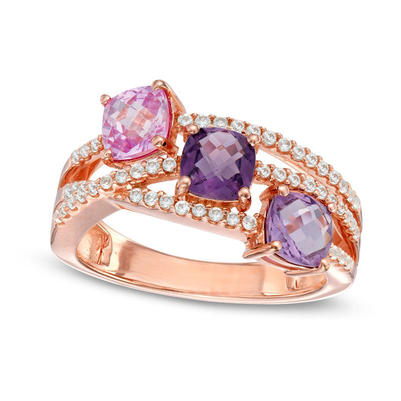 Cushion-Cut Amethyst and Lab-Created Pink and White Sapphire Ring in Sterling Silver with Solid 14K Rose Gold Plate
