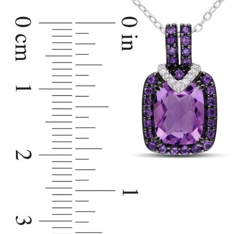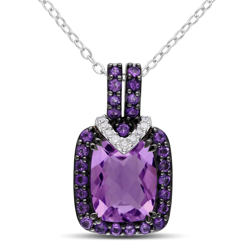 Cushion-Cut Amethyst and Natural Diamond Accent Pendant in Sterling Silver with Black Rhodium