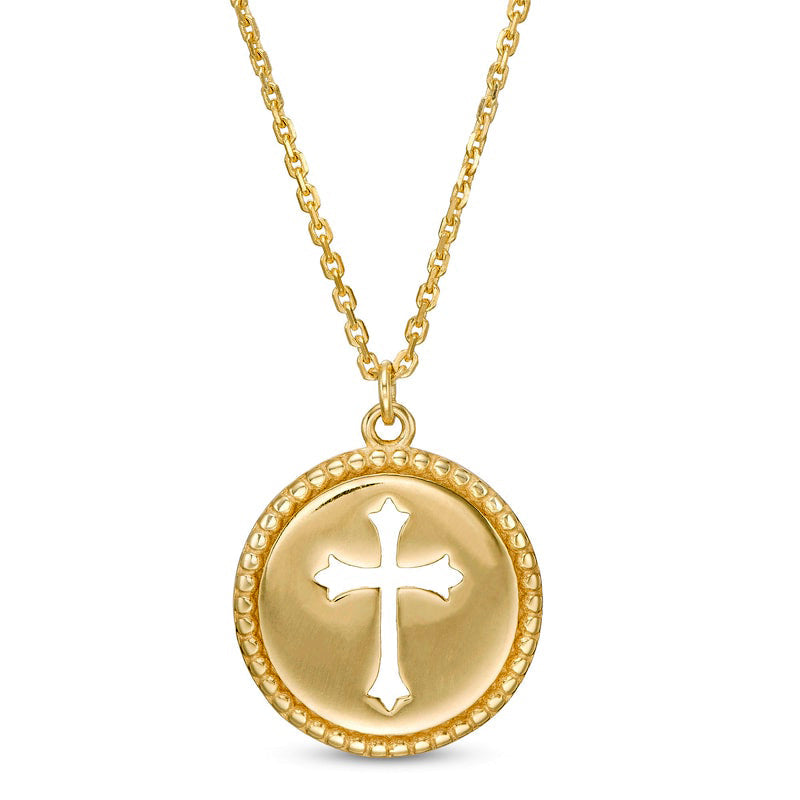 Cut-Out Gothic-Style Cross Bead Frame Medallion Pendant in 14K Gold