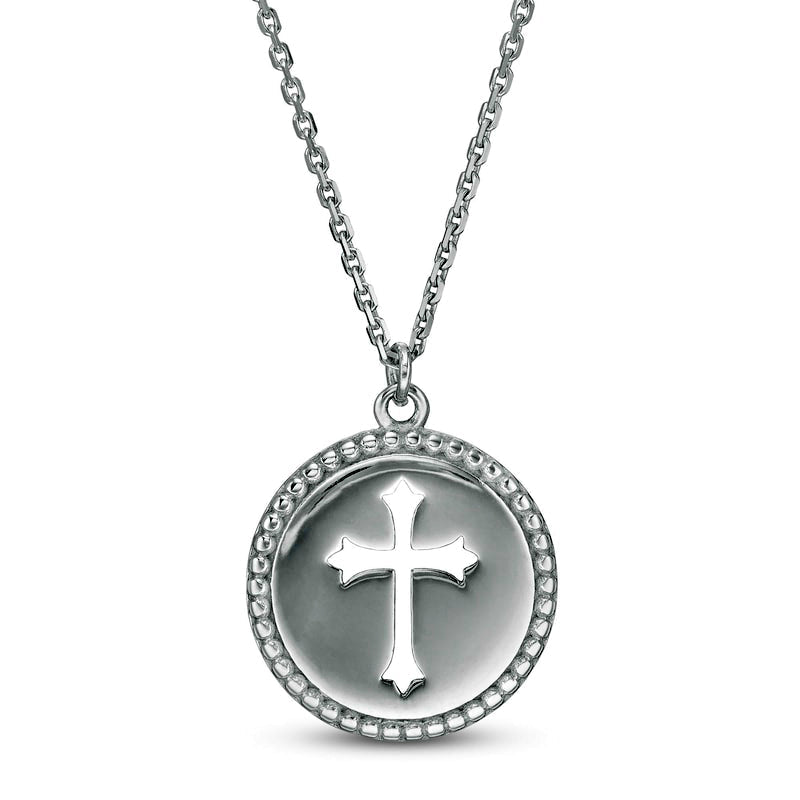 Cut-Out Gothic-Style Cross Bead Frame Medallion Pendant in 14K White Gold