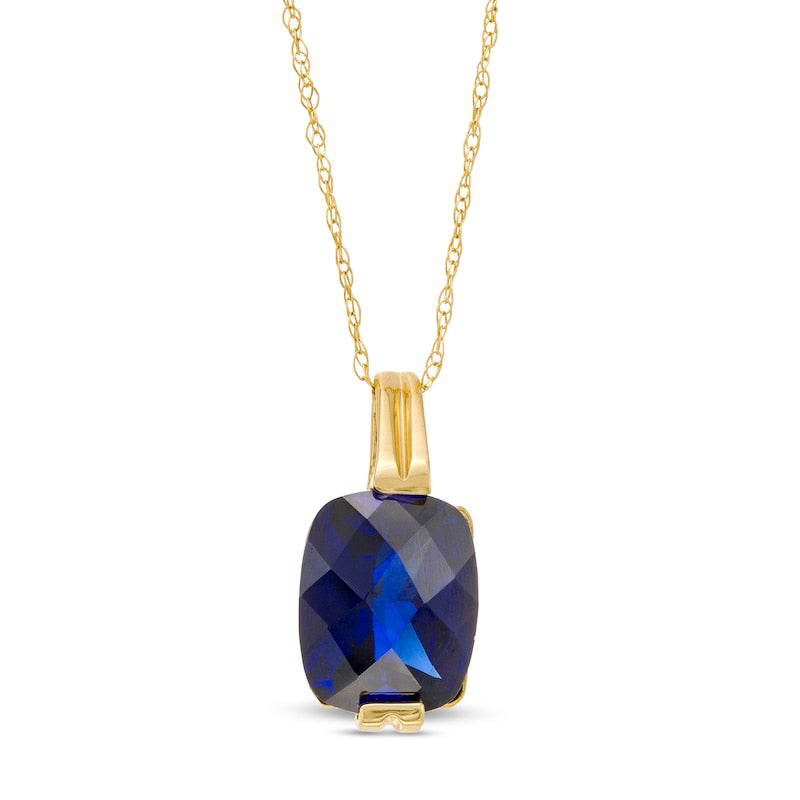 Elongated Cushion-Cut Lab-Created Blue Sapphire Pendant in 10K Yellow Gold