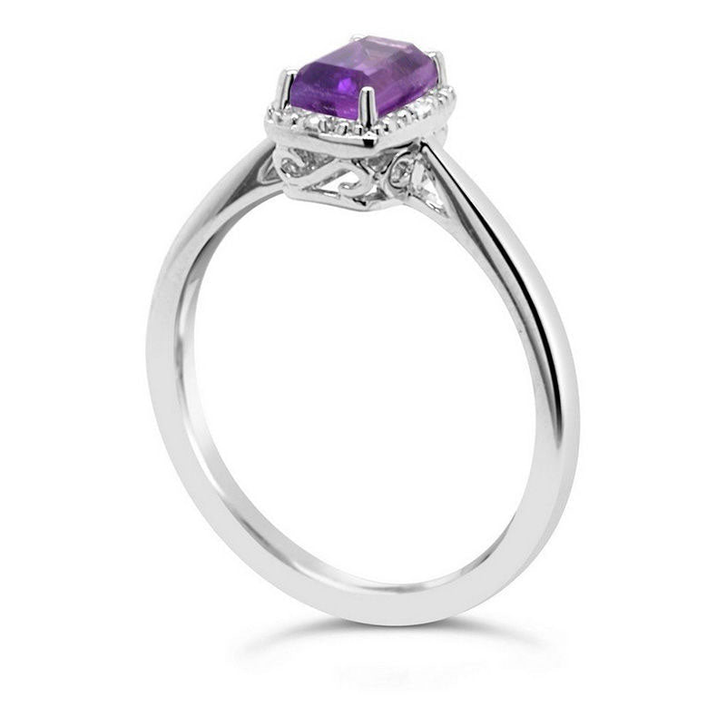 This stunning piece of jewelry is a must-have to complete any look. The Emerald-Cut Amethyst and Diamond Accent Beaded Frame Ring, made in elegant sterling silver, showcases a vibrant 6.0...
