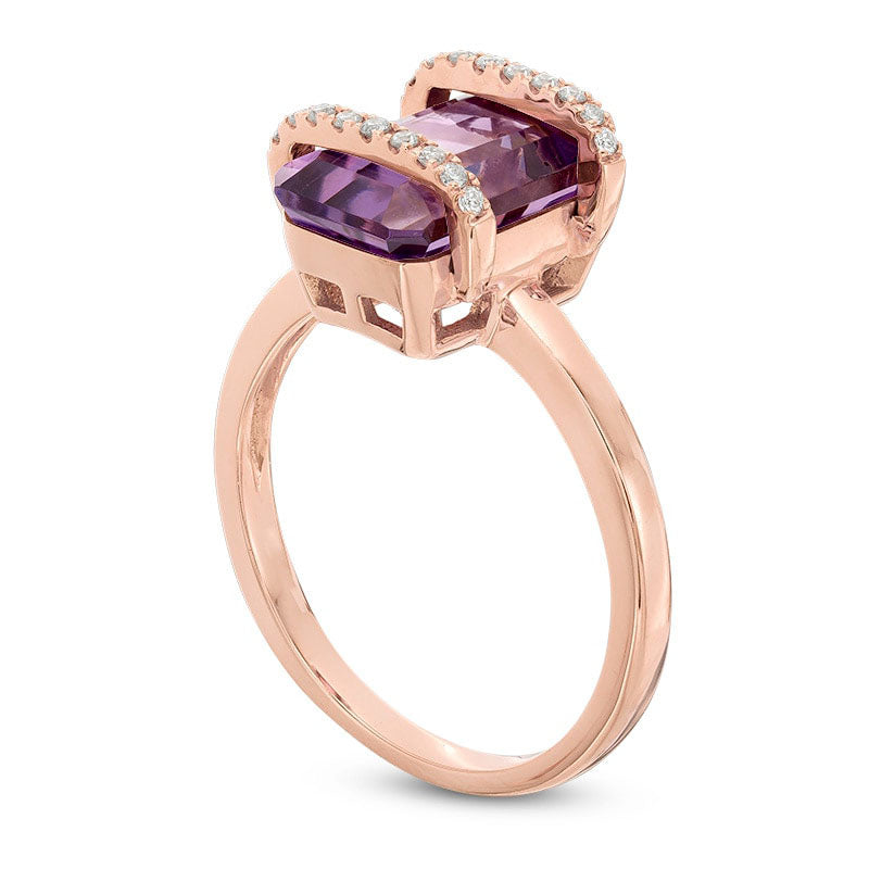 Emerald-Cut Amethyst and Natural Diamond Accent Double Overlay Ring in Solid 10K Rose Gold