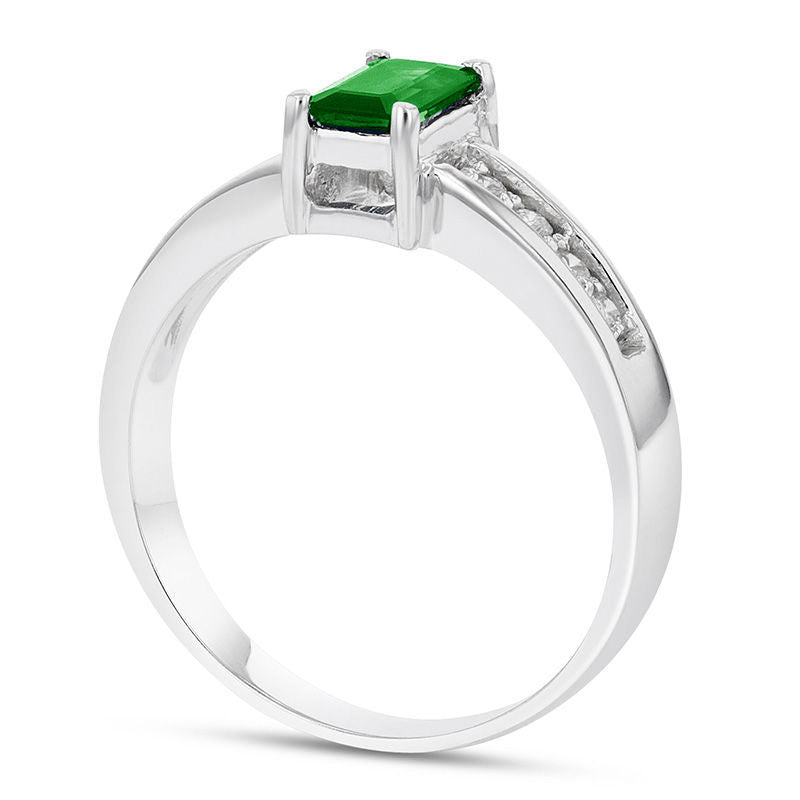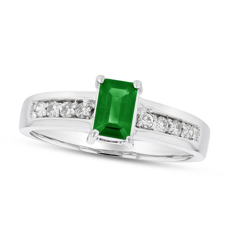 Emerald-Cut Emerald and 0.17 CT. T.W. Natural Diamond Engagement Ring in Solid 14K White Gold
