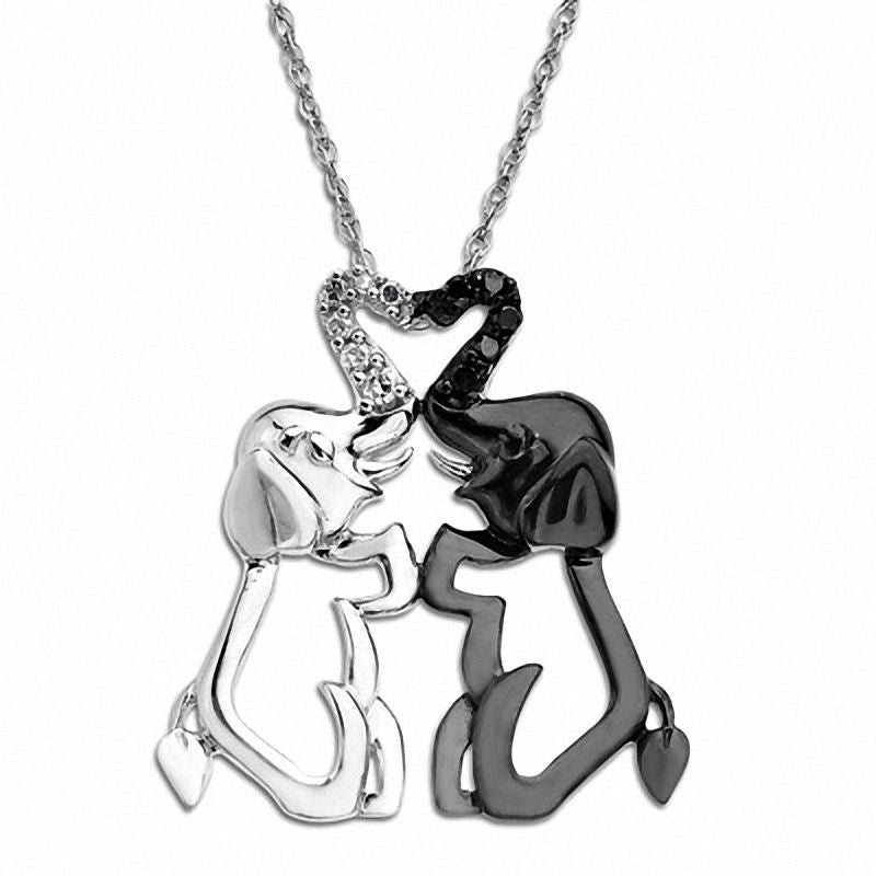 Enhanced Black and White Natural Diamond Accent Intertwined Elephant Pendant in 10K White Gold