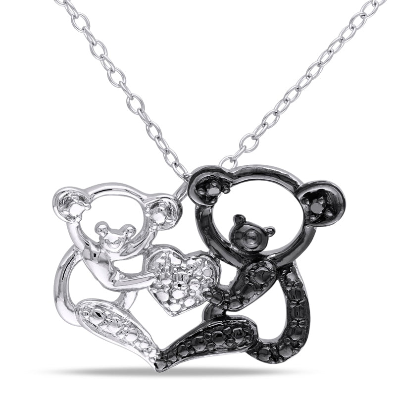Enhanced Black Natural Diamond Accent Motherly Love Bear Pendant in Two-Tone Sterling Silver