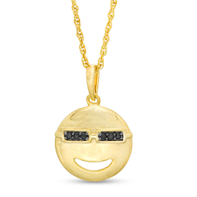Enhanced Black Natural Diamond Accent Smiley Face with Sunglasses Pendant in Sterling Silver with 14K Gold Plate