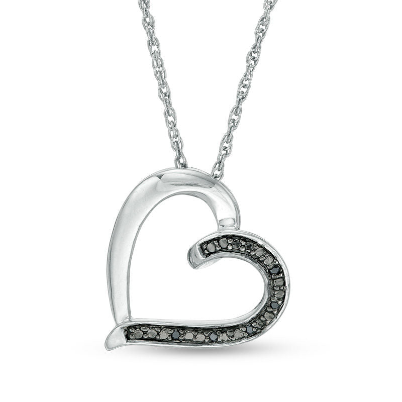 Enhanced Black Natural Diamond Accent Tilted Loop Heart Outline Pendant in 10K White Gold