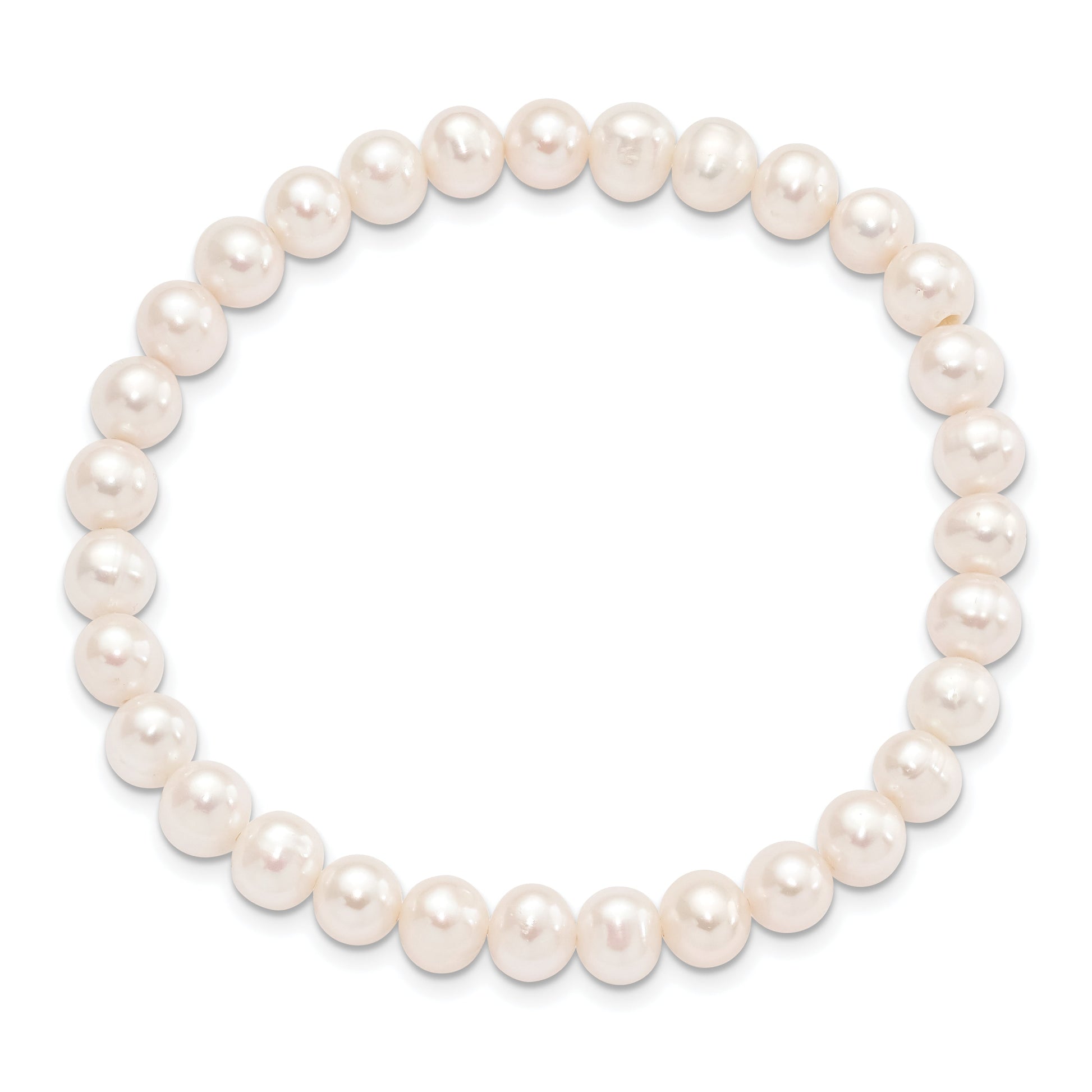 The Fashion 6-7mm White Semi-Round Freshwater Cultured Pearl Stretch Bracelet is an exquisite testament to elegance. Crafted with 31 luminous white semi-round pearls, each measuring 6 to 7 mm, this bracelet maintains a stunning appeal. Handmade and designed with comfort, it features a stretch band for easy wearing. The absence of a clasp means no fuss—just slip it on and go. Its cultured freshwater pearls undergo a gentle bleaching process to enhance their radiance. Ideal for every woman, the bracelet combines timeless style and modern convenience. Embrace the allure of this Fashion 6-7mm White Semi-Round Freshwater Cultured Pearl Stretch Bracelet.
