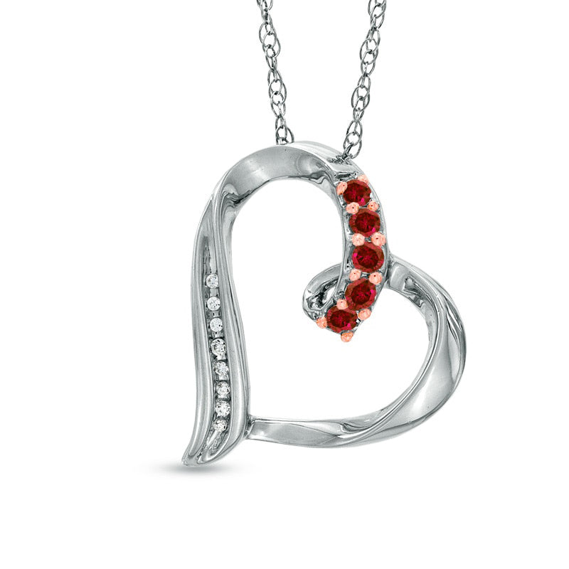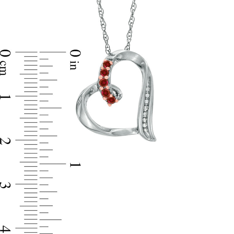 Garnet and Natural Diamond Accent Looping Heart Pendant in Sterling Silver