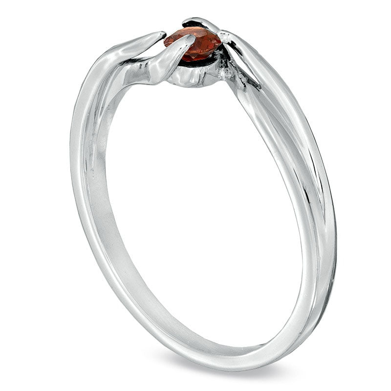 The 'Garnet Bypass Promise Ring in Sterling Silver' features a striking fiery red round garnet nestled within high-quality sterling silver, creating a timeless and trendy look. The garnet, which measures...