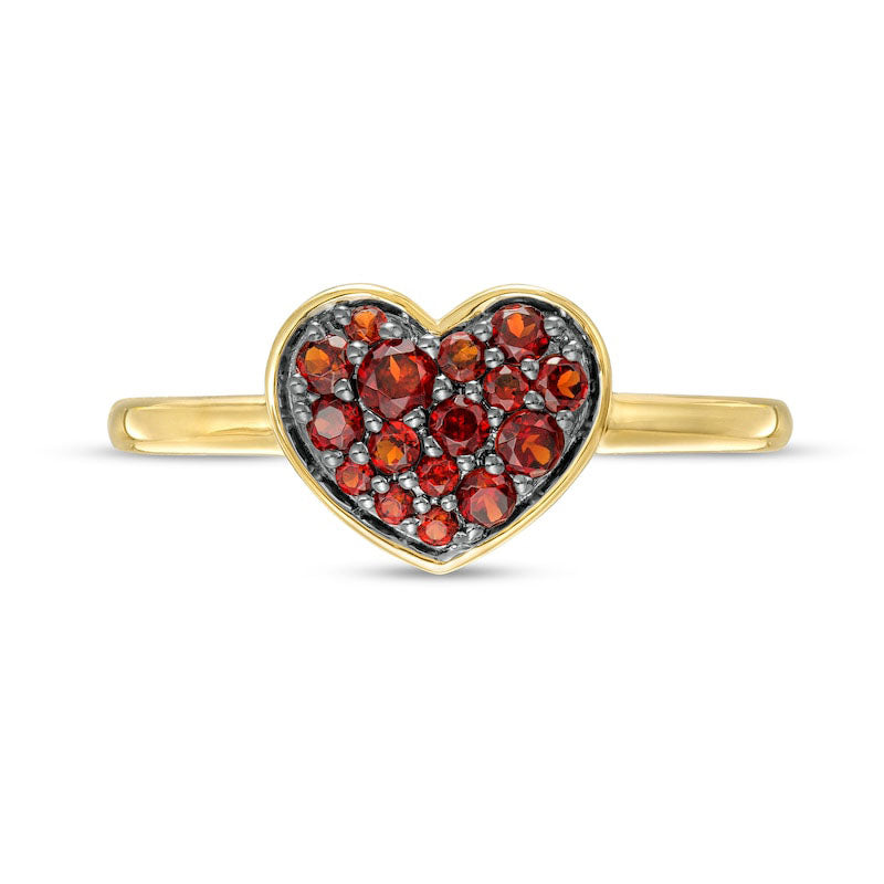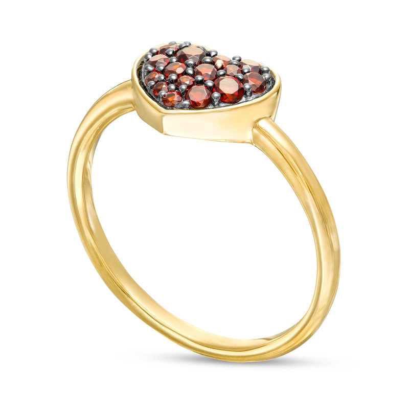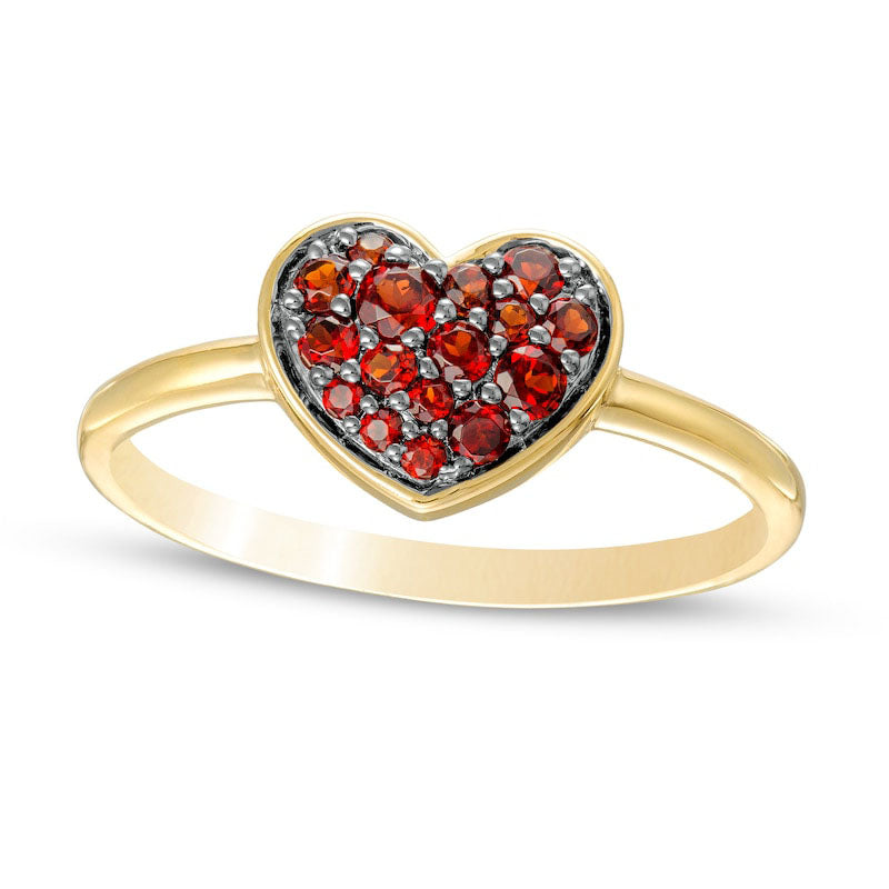 Garnet Cluster Heart Ring in Solid 10K Yellow Gold