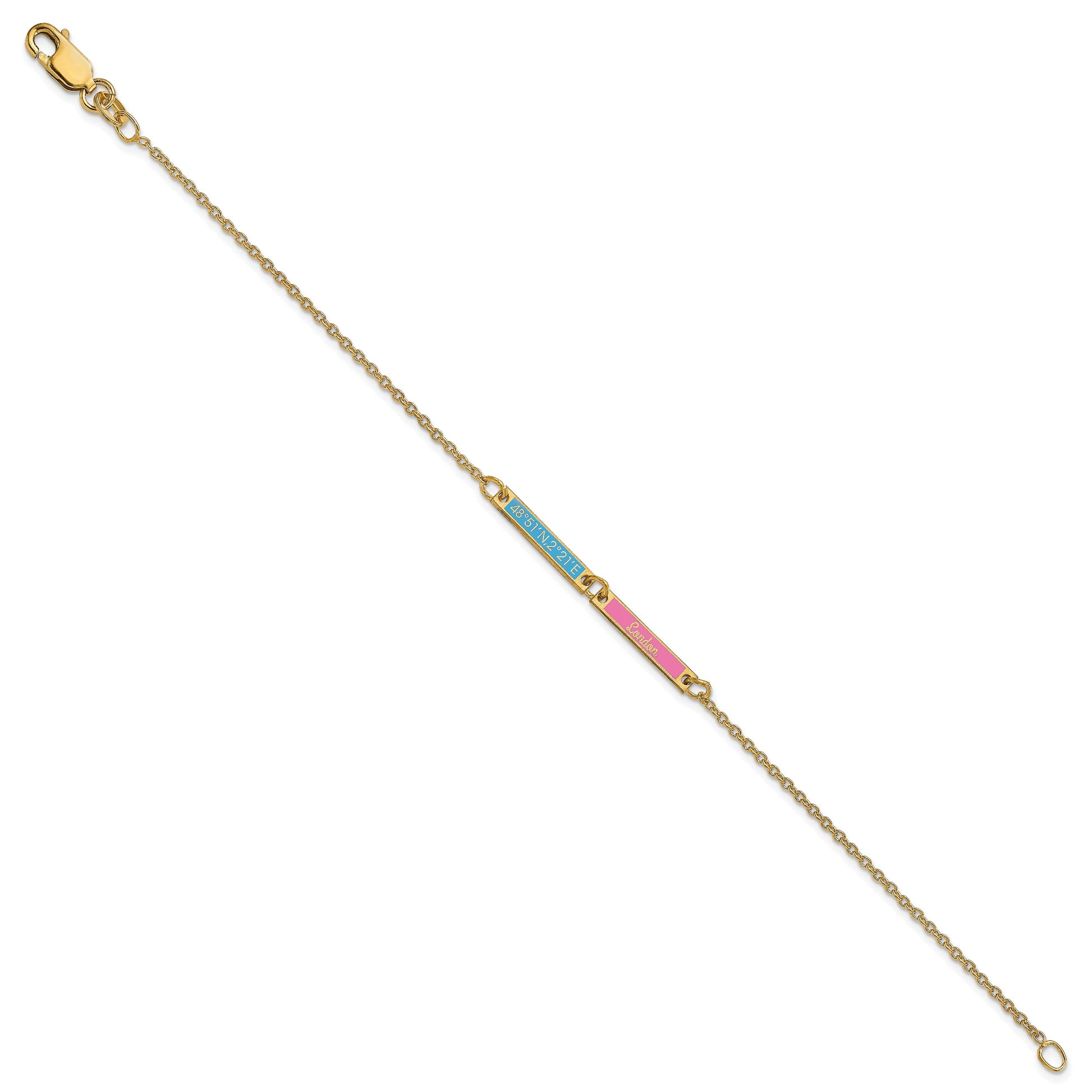 The Ss/Gold Plated Sterling Silver/Gold-Plated Brushed 2 Station W/Epoxy Bracelet is a stylish piece designed for women. Crafted from pure sterling silver, it features a brushed finish that adds a modern touch. The bracelet measures 6.5 inches and includes a 1-inch extender for a perfect fit. Bright gold plating gives it a rich glow, while enamel accents add color. The two stations showcase personalized charms, making it a unique touch. Lightweight and easy to wear, the Ss/Gold Plated Sterling Silver/Gold-Plated Brushed 2 Station W/Epoxy Bracelet is perfect for everyday style.