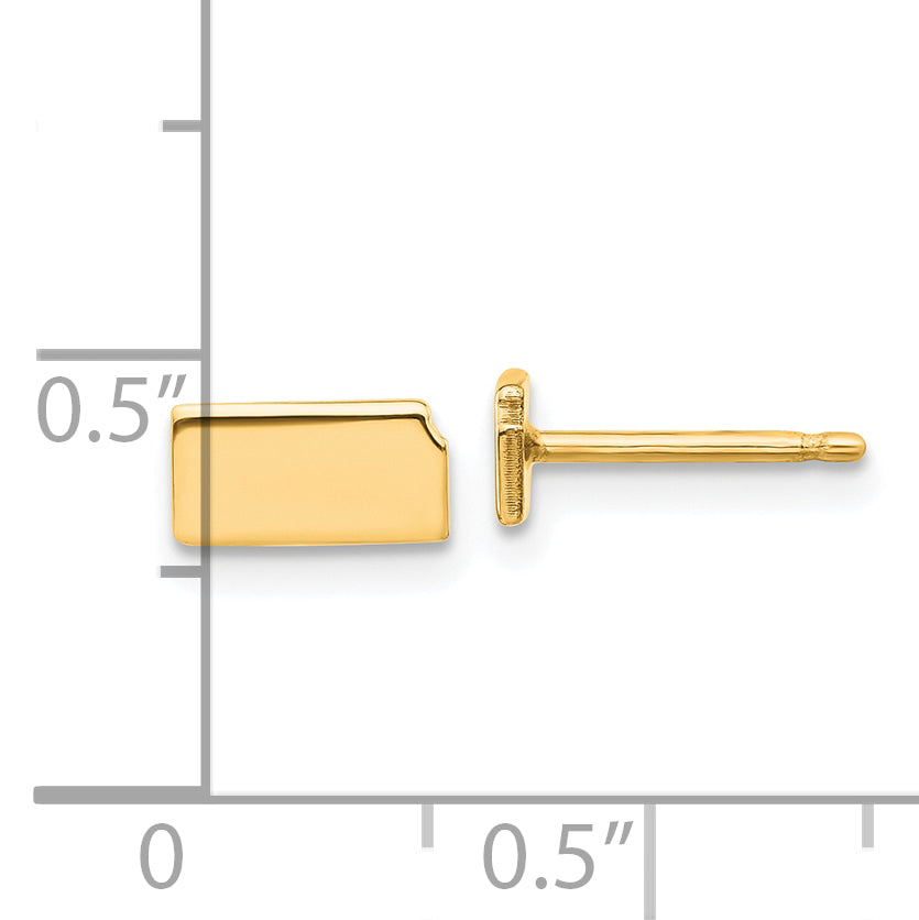 Introducing the Gold-Plated Kansas State Earrings, a charming addition for any jewelry lover. Crafted from high-quality 925 sterling silver, these earrings boast a shiny gold finish that catches the eye. Measuring just over 4 millimeters long and 8 millimeters wide, they are perfect for daily wear. The button style with a secure post and push back makes them easy to put on and stay in place. These small, elegant earrings showcase Kansas’s state shape in bright yellow gold tone. With their simple yet stylish design, the Gold-Plated Kansas State Earrings bring a touch of charm to any outfit.