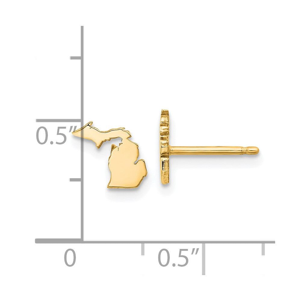 Show your love for Michigan with the Gold-Plated Sterling Silver Earrings. These earrings are crafted from high-quality 925 sterling silver and finished with a bright gold tone. Each earring measures just over 8 millimeters long, making them a subtle yet stylish choice. The button design features a simple post and push-back closure for a secure fit. Perfect for everyday wear, these Michigan State Earrings are small, elegant, and versatile. Add a touch of local pride to your look with these sleek jewelry pieces. The Gold-Plated Sterling Silver Earrings celebrate Michigan and shine with lasting beauty.