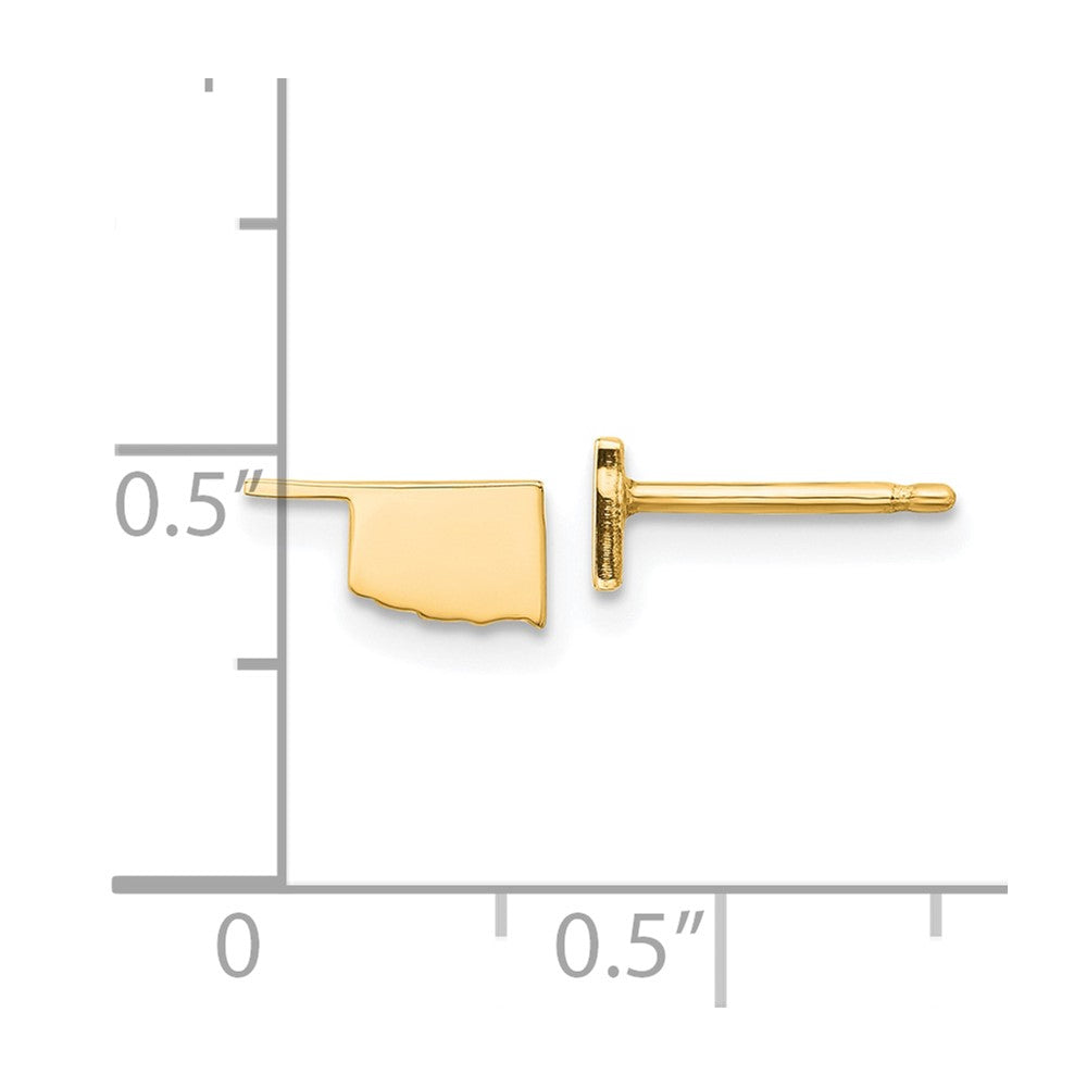 Discover the charm of the Gold-Plated Oklahoma State Earrings, crafted from high-quality sterling silver. These petite, button-style earrings measure just 4.6 mm in length and 8.97 mm wide, making them perfect for everyday wear. The polished gold-tone plating adds a bright, shiny finish that shines with your style. Designed for women who love a simple yet meaningful accessory, these earrings feature a secure post and push-back closure. Showcase your Oklahoma pride with these elegant earrings that blend quality and charm in every detail.