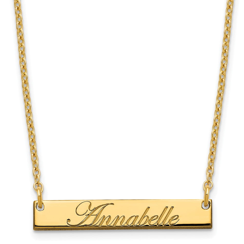 The Ss/Gold Plated Sterling Silver/Gold-Plated Small Edwardian Script Bar Necklace is a chic piece designed for women. Made with high-quality 925 sterling silver, it features a sleek, polished finish and a 18-inch gold-plated cable chain. The tiny, elegant bar pendant, measuring 4.26 mm by 25.52 mm, can be engraved on both sides to add your unique touch. Its lobster clasp ensures secure wear, making it perfect for daily or special occasions. The personalized necklace blends timeless style with a modern flair, showcasing your initials or a special message in a small yet impactful way.