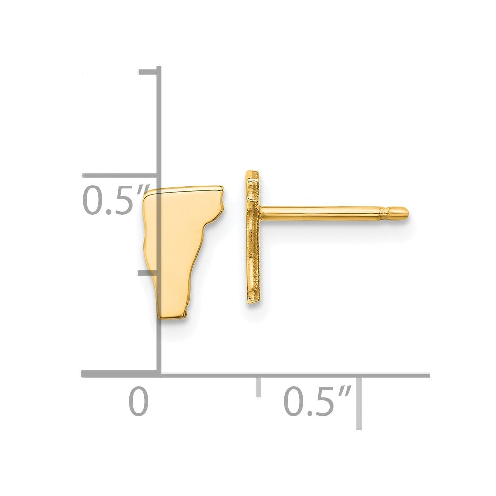 Bring a touch of Vermont charm to your jewelry collection with the Gold Plated Vermont State Earrings. Crafted from sterling silver with a polished finish, these small, button-style earrings measure just over 8 mm long and 5 mm wide, making them perfect for everyday wear. The bright gold tone adds a warm glow, and the post and push back closure ensures a comfy fit. These earrings highlight your love for Vermont while offering a simple, stylish look. The Gold Plated Vermont State Earrings make a great gift or a fun way to show your moniker for the Green Mountain State.