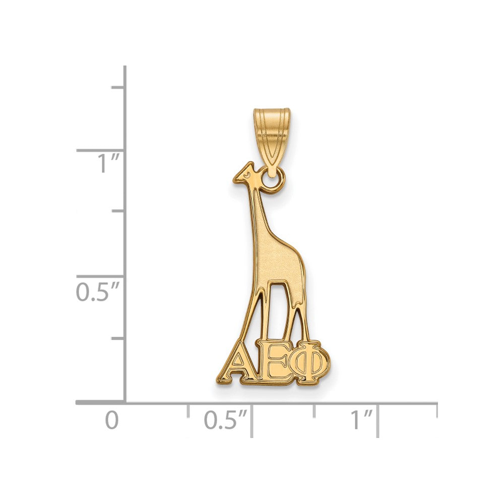 Show your pride with the LogoArt Alpha Epsilon Phi Sorority Pendant, crafted from shining sterling silver with a rich gold plate. Measuring 27mm long, this elegant pendant features the sorority’s logo in a sleek laser-cut design. Its polished finish gives it a bright look perfect for everyday wear or special occasions. The pendant's medium size makes it a versatile choice that sits comfortably on your neck, showcasing your sisterhood. With a sturdy 4mm bail, it fits most chains, making it easy to style. Pick the LogoArt Alpha Epsilon Phi Pendant to add a classy touch and let your sorority spirit shine.