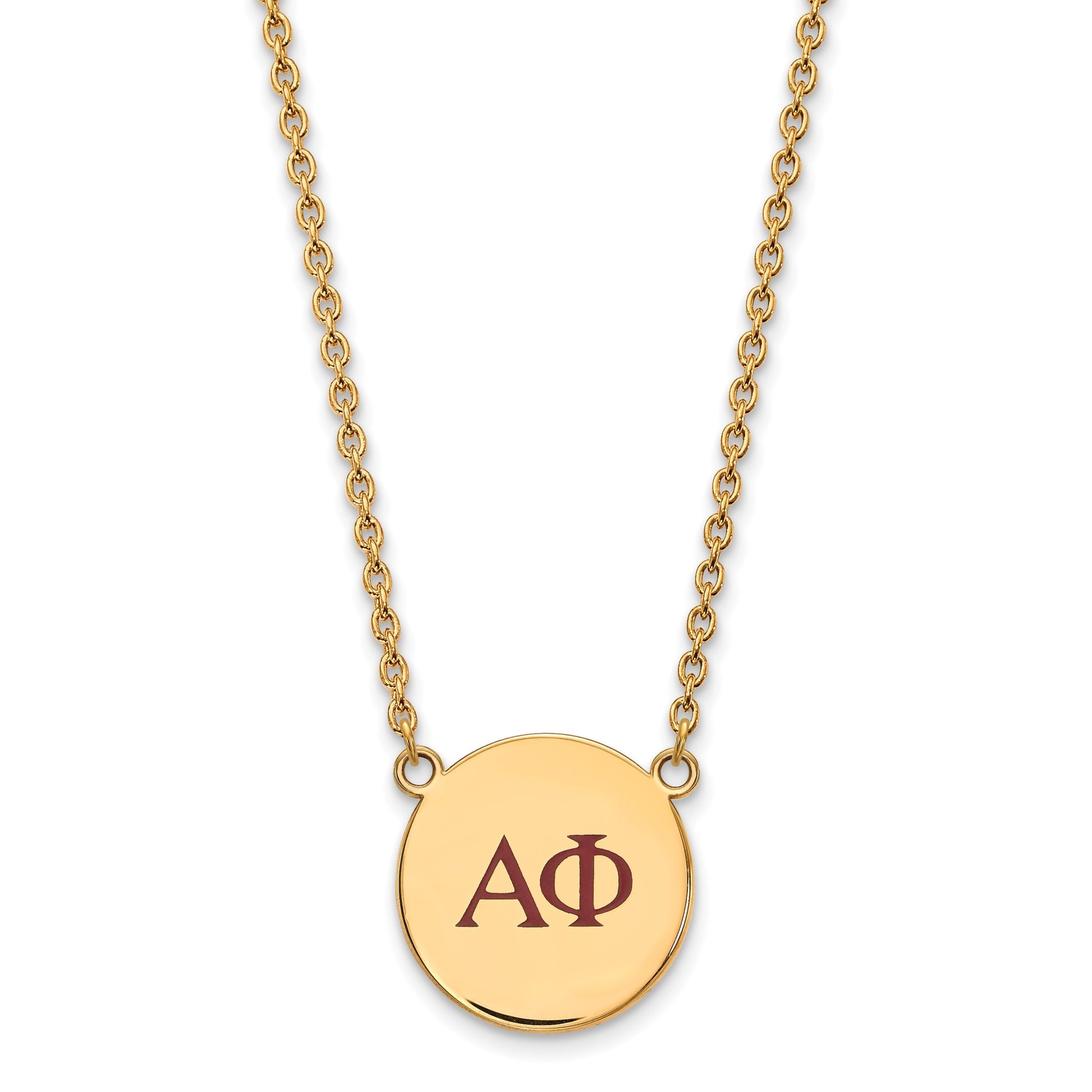 Celebrate your Alpha Phi pride with the LogoArt Alpha Phi Greek Letters Necklace. This bold piece features large, colorful enamel Greek letters set on polished 925 sterling silver, giving it a gleam that stands out. The gold-plated finish adds a touch of class, making it perfect for any occasion. The necklace measures 18 inches with a sturdy lobster clasp. Its sizable charm, 19 mm wide and tall, makes a clear statement. Show your sorority spirit with this eye-catching necklace that blends quality and style effortlessly. The LogoArt Alpha Phi necklace is a must-have for any sister looking to wear her pride proud.