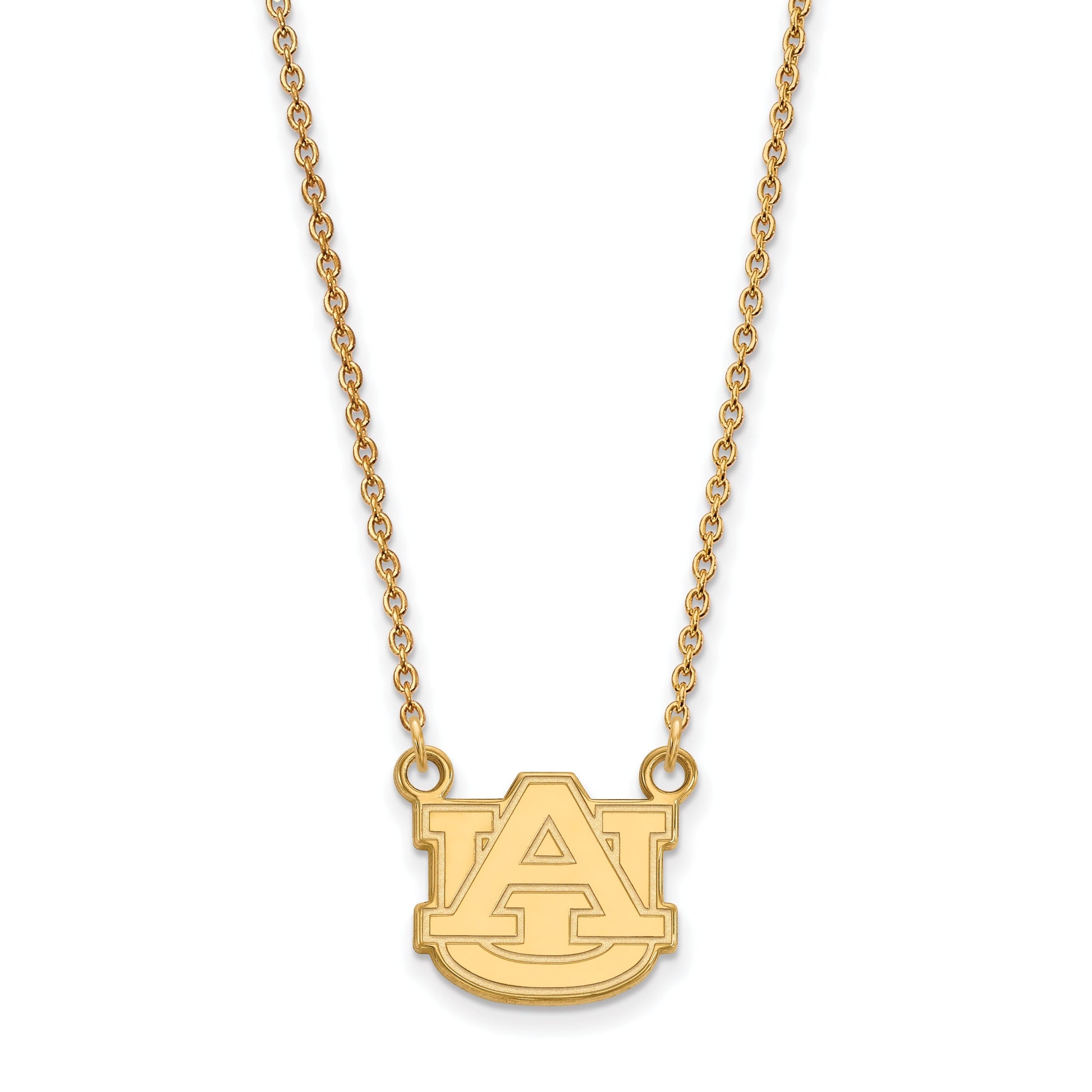 Show your school pride with the LogoArt Auburn University Small Pendant Necklace. Made of sleek sterling silver and finished with a bright gold plating, this 18-inch cable chain is both durable and stylish. The pendant, measuring 13mm, features the iconic Auburn University logo, laser cut for precision. A lobster clasp keeps it secure, so you can wear it daily. Perfect for Auburn fans, this jewelry piece combines quality craftsmanship with a clear display of your school spirit. The LogoArt Auburn University Small Pendant Necklace is a great way to show off your pride in style.