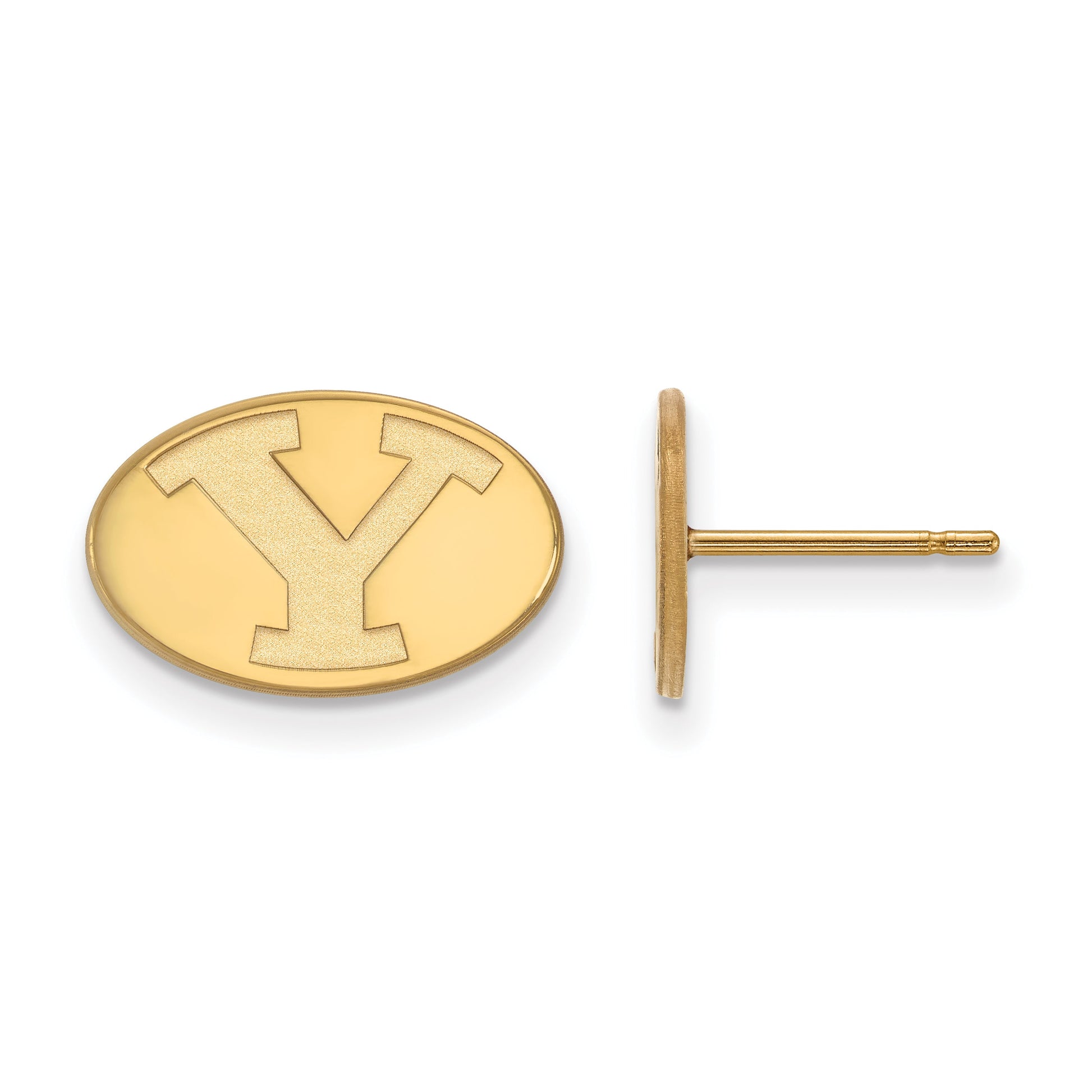 Show off your school spirit with the Brigham Young University Letter Y Earrings. Made from high-quality sterling silver, these earrings are coated with a bright gold finish that catches the eye. Each earring measures 9 mm long and 14 mm wide, making them small but noticeable. The laser-cut design features the iconic BYU letter Y, licensed by NCAA and crafted by LogoArt LLC. Designed for women, these button-style earrings have a secure post and push back for easy wear. The Brigham Young University Letter Y Earrings deliver a sleek and bold look that fits everyday style perfectly.