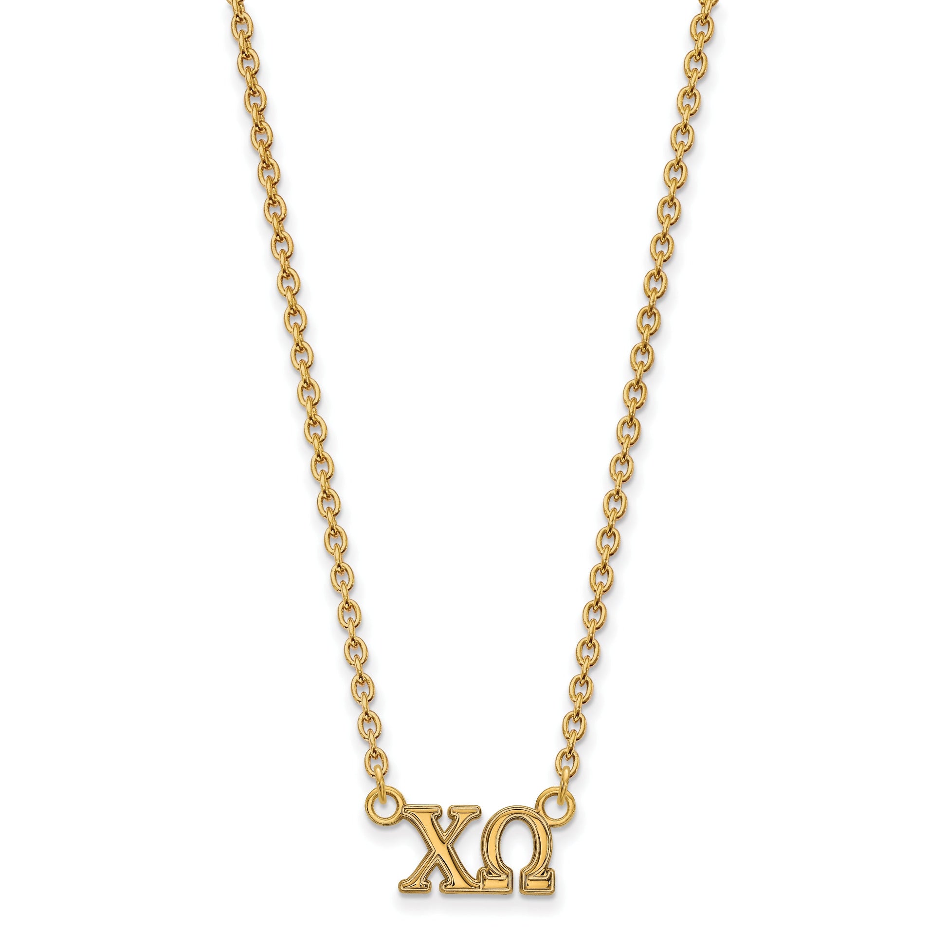 Celebrate your Greek pride with the LogoArt Chi Omega Greek Letters Necklace. Made from bright sterling silver with a gold-plated finish, this 18-inch chain adds a touch of elegance to your look. The pendant features the iconic Chi Omega logo, laser-cut for a clean, sharp finish. Its medium size makes it perfect for daily wear or special occasions. The cable chain is durable and easy to wear, secured by a lobster clasp. Own a piece of sisterhood with the LogoArt Chi Omega Greek Letters Necklace, a stylish way to show your bond.