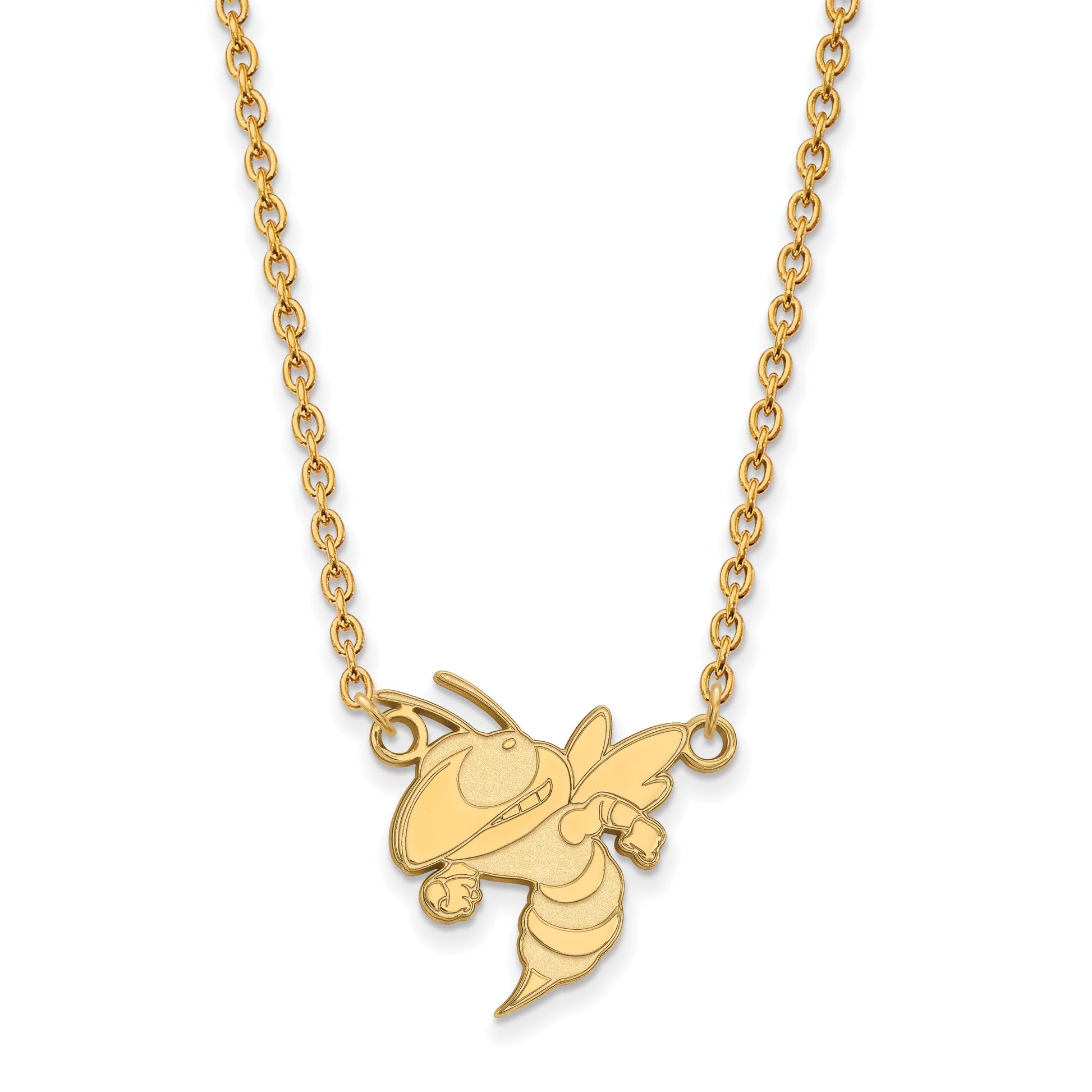 Show your school pride with the LogoArt Georgia Institute of Technology Yellow Jacket Large Pendant Necklace. Crafted from polished sterling silver and coated in gold plating, this 18-inch cable chain key chain highlights the iconic Yellow Jacket logo. With a 14mm charm and a lobster clasp, it’s built to last and keeps your favorite school close. Ideal for fans and alumni, the LogoArt Georgia Tech necklace offers a sleek look with a touch of school spirit. Wear this jewelry piece to show what you stand for—school pride has never been so easy.
