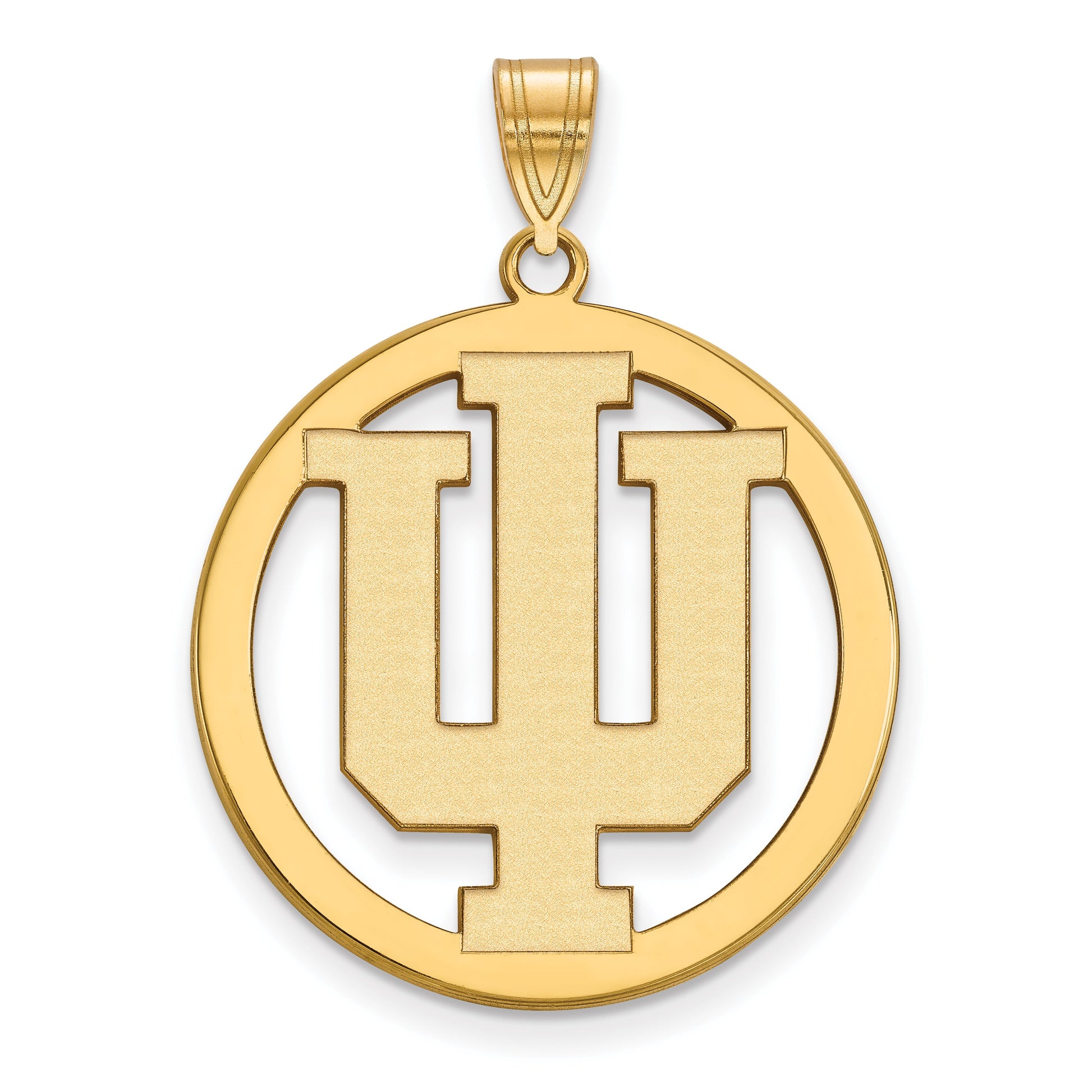 Show your school spirit with the LogoArt Indiana University I-U Extra Large Circle Pendant. Crafted from high-quality sterling silver with a bright gold plating, this bold piece measures 33 mm long and features the iconic IU logo. The laser-cut design offers a sleek look, while the polished finish adds shine. With its large size and sturdy bail, it's perfect for teens and alumni who want to make a statement. Represent Indiana University with this eye-catching pendant, a true symbol of pride and style for any IU fan.