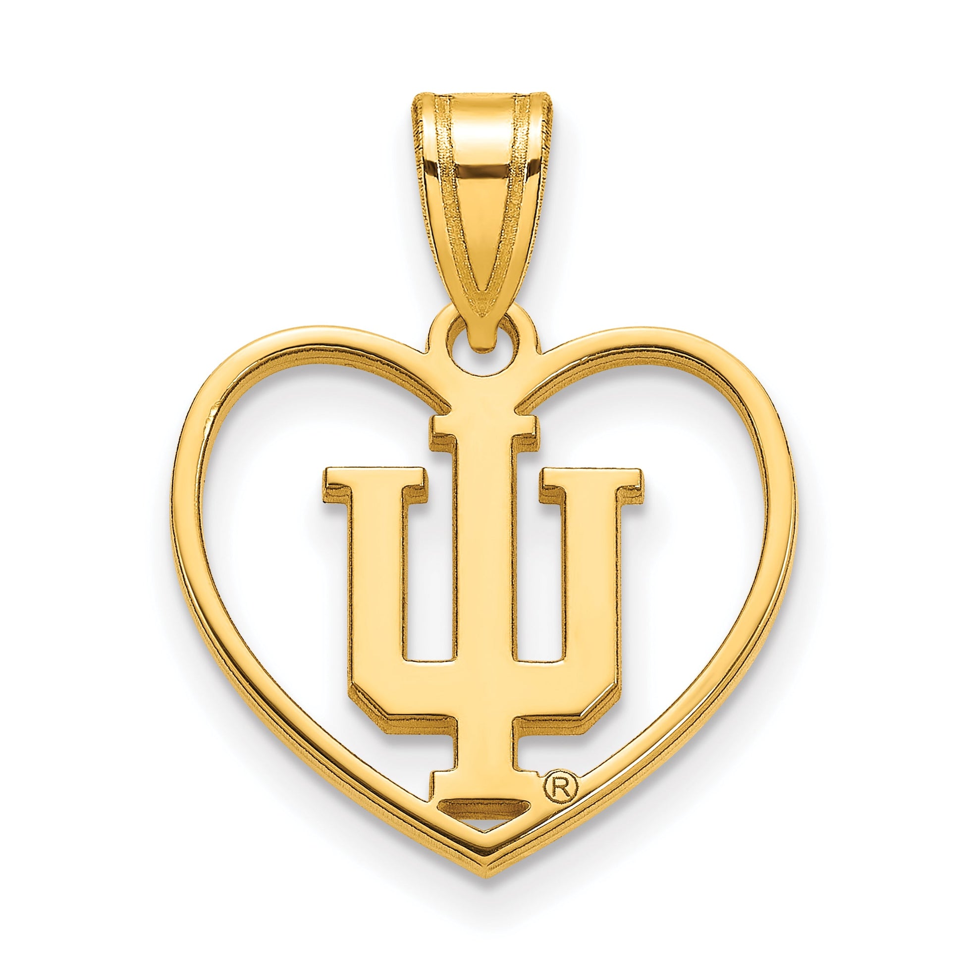 Show your school spirit with the LogoArt Indiana University I-U Heart Pendant. Crafted from high-quality sterling silver, this pendant features a bold gold plating that adds a touch of shine. The laser-cut design showcases the iconic IU heart logo, symbolizing pride and loyalty. Measuring 21 mm in length and 17 mm in width, it strikes the perfect balance between standout style and subtlety. The polished finish enhances its sleek look, while the 4 mm bail makes it easy to wear on any chain. The Indiana University logo within this pendant truly makes it a special piece for fans and alumni alike.