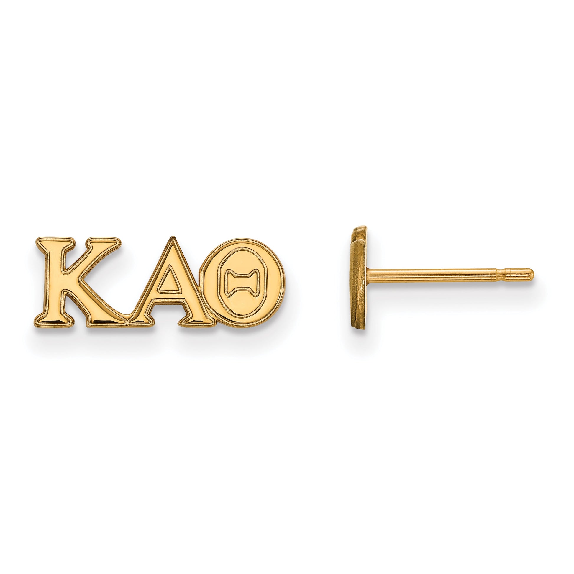 Show off your sisterhood with the LogoArt Kappa Alpha Theta Greek Letters Earrings. Crafted from premium sterling silver and finished with shining gold plating, these earrings give a bold look in a tiny size. Each piece measures just 6 mm long and 15 mm wide, perfect for everyday wear. The laser-cut design captures the Greek letters clearly and precisely. With a sturdy post and push back, these earrings stay right where they belong. Made with quality and care, the LogoArt Kappa Alpha Theta earrings blend style and meaning in one small, eye-catching piece.