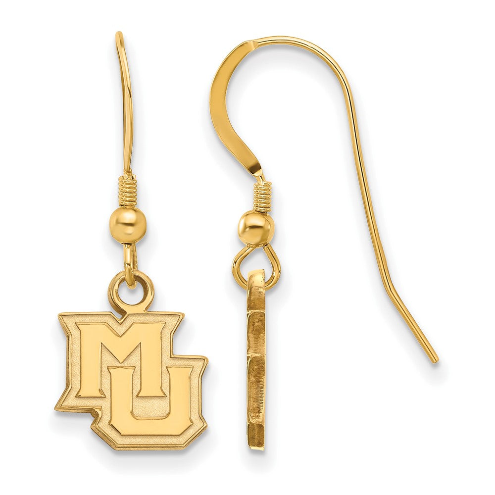 Show your school spirit with the Sterling Silver Gold-Plated Logoart Marquette University M-U Extra Small Dangle Wire Earrings. Crafted from high-quality sterling silver, these earrings feature a polished finish that catches the light perfectly. The 29 mm length makes them ideal for everyday wear, while the gold plating adds a bright, stylish look. The laser-cut design captures the iconic Marquette University logo with crisp detail. Safe and easy to wear, the French wire closure keeps them secure. These earrings from LogoArt LLC bring a subtle touch of pride to your style.