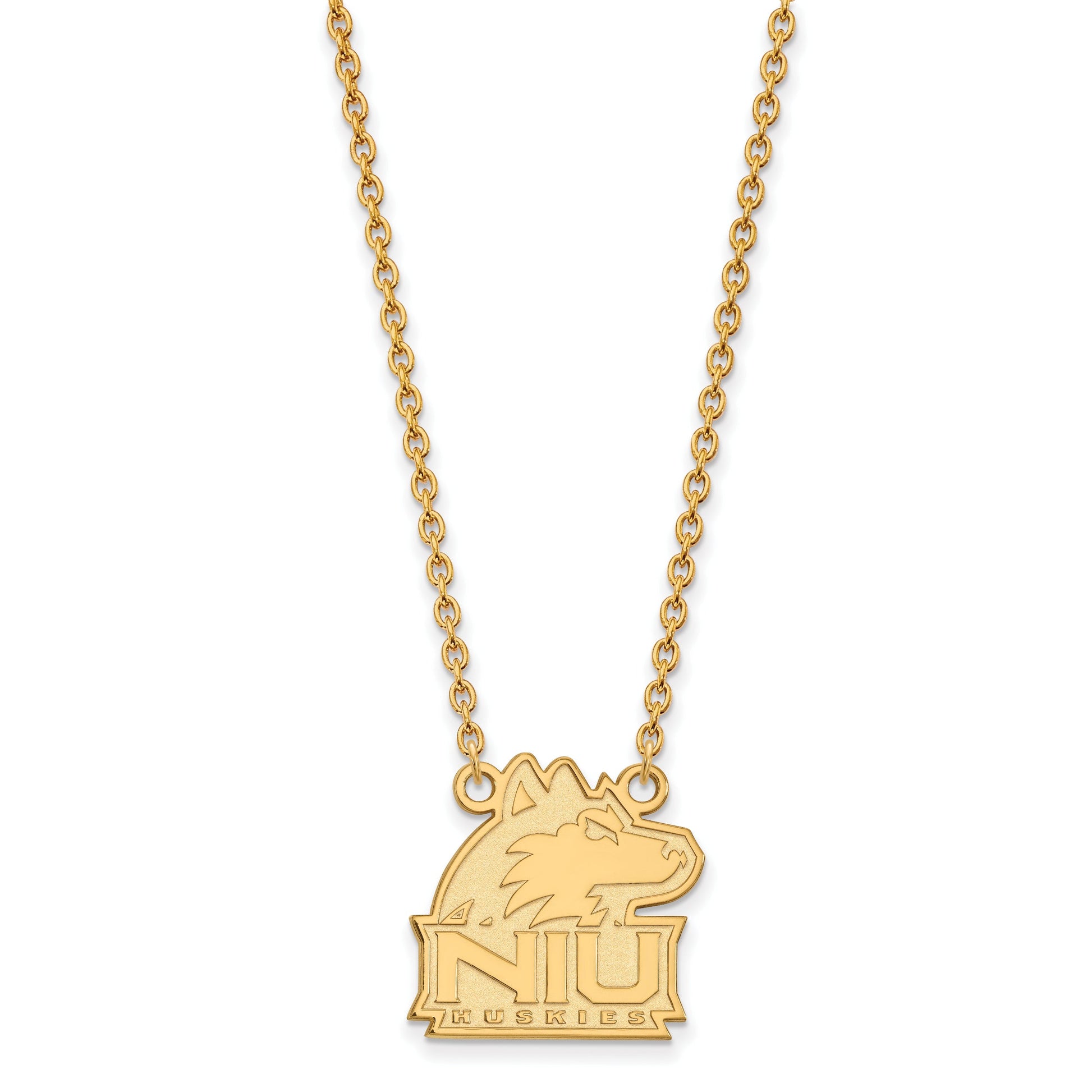 Show your school pride with the LogoArt Northern Illinois University Huskies Pendant Necklace. This 18-inch chain features a polished sterling silver pendant that measures 15mm by 16mm, beautifully highlighted with a gold plating finish. The charm displays the NIU Huskies logo, a symbol of school spirit, and is laser cut for a clean look. Crafted with care, the necklace has a sturdy lobster clasp and a 2mm cable chain that sits comfortably around the neck. Perfect for students and alumni alike, the Northern Illinois University Huskies Necklace makes a stylish statement and keeps your team close.
