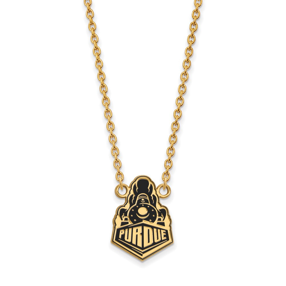 Show your team pride with the LogoArt Purdue University Boilermakers Train Pendant Necklace. Crafted from sterling silver and finished with a rich gold plating, this bold piece features the Purdue train logo in vibrant enameled colors. The large pendant measures 21 mm by 14 mm, making it a standout accessory. It hangs on an 18-inch cable chain, perfect for everyday wear. Licensed by NCAA and made with laser-cut precision, the LogoArt Purdue University Boilermakers Train Necklace blends style with school spirit, offering a sleek way to showcase your support for Purdue.