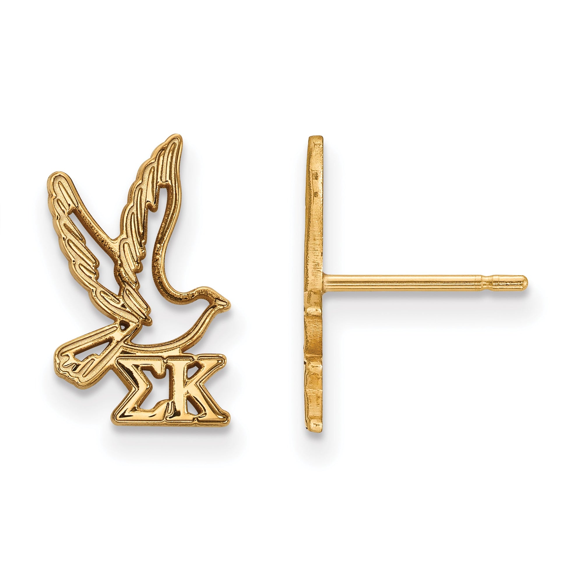 Show off your pride with the Gold-Plated Sterling Silver Sigma Kappa Sorority Logoart Earrings. These small, eye-catching earrings are crafted from high-quality sterling silver with a polished finish. They feature a sweet 12 mm diameter and are designed with the iconic Sigma Kappa logo in a vibrant gold tone. The button-style earrings have a secure post and push-back closure that feels comfy for daily wear. Perfect for any woman who wants a subtle yet stylish way to show her sorority spirit, Gold-Plated Sterling Silver Sigma Kappa Earrings blend small size with big pride.