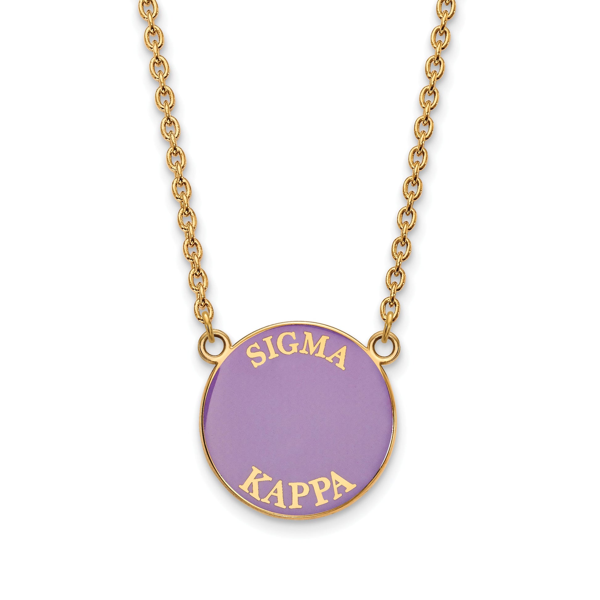 Show your pride with the Logoart Sigma Kappa Sorority Necklace. This bold piece features a large enamel pendant with the sorority’s logo in purple and maroon accents, adding a pop of color. Made of polished sterling silver, it shines bright and feels sturdy. The 18-inch cable chain is easy to wear, with a lobster clasp for a secure fit. Perfect for any Sigma Kappa sister, this necklace highlights your bond and love for the sorority. Ruby details and a polished finish make the Logoart Sigma Kappa Sorority Necklace a must-have jewelry piece that stands out.